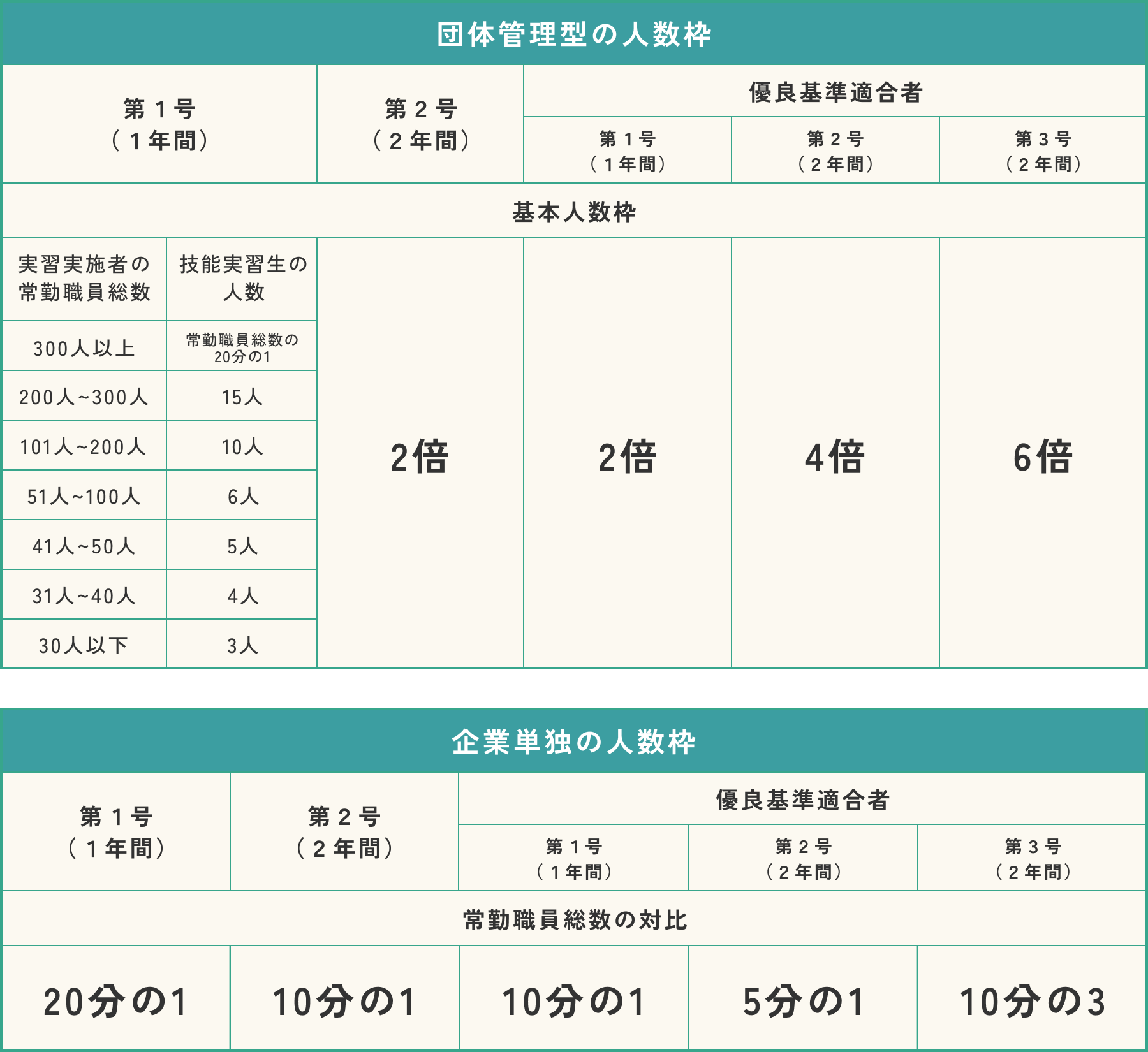 受入れ制度の人数は、各企業が実習生の適切な指導と管理を行える範囲内で設定されます。また、受入れる実習生の人数には、人材需要や人材育成のニーズ、労働力のバランスなどを考慮して決定されます。